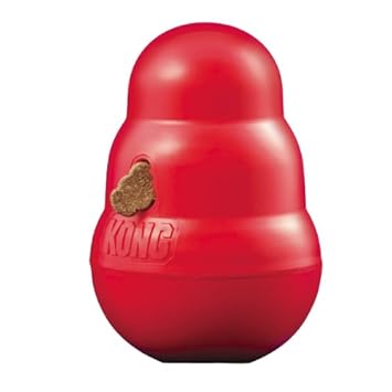 The KONG WobblerWobblers wobble but they don’t fall down The Wobbler is a KONG-shaped toy and feeder that sits up until your dog pushes it down with their paws or noses. The best part- it then dispenses treats as it wobbles, spins and rolls. The unpredictable movement keeps the toy challenging, even for the seasoned pooch. Use the Wobbler as an alternative to a dog bowl, and help extend meal time and exercise your dog.